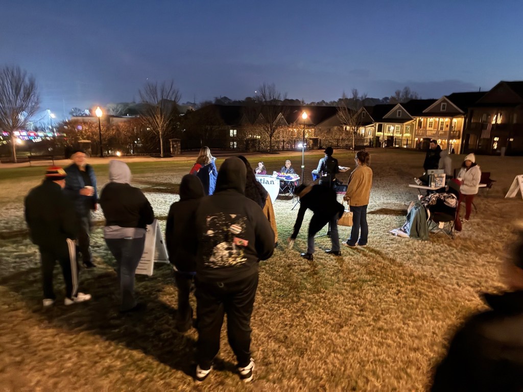 Great work continues to be done at the new church plant in Norcross, Georgia, Emmanuel Lutheran Church! This past Saturday was an absolute dynamite night of ministry! Thanks be to God for each of you who made such an impact!!! The hot coffee and hot tea were a big hit and helped everyone out on a cold night. It was so wonderful to see so many new conversations and engagements where people’s questions were heard and the Gospel was shared. Thanks be to God for Vicar Phil Owen and his wife Sabrina for their faithfulness in this mission!