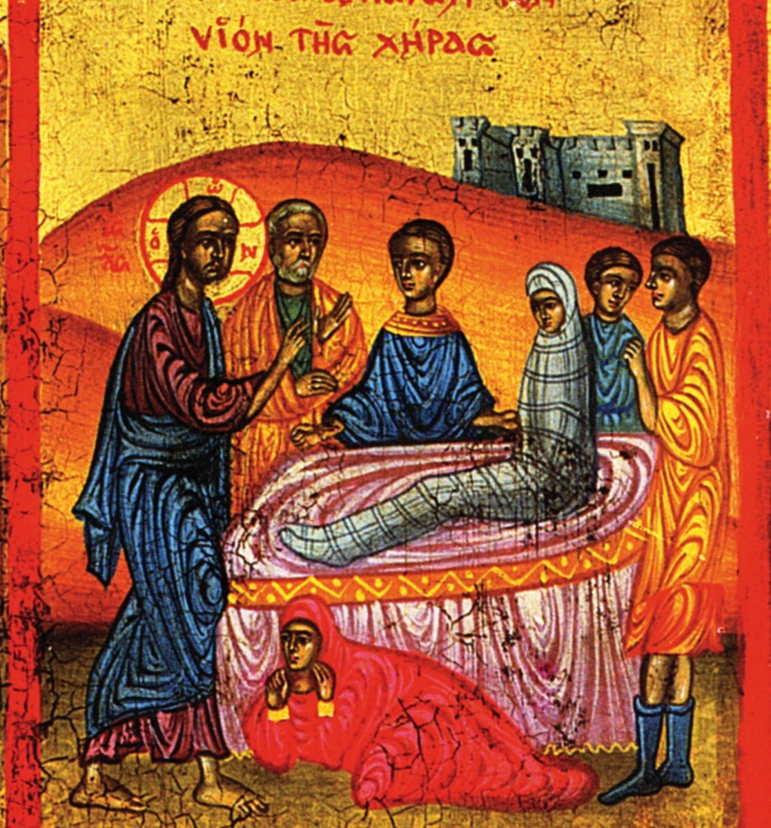 Then, according to that day, our Lord came toward Nain with His disciples, and sees the bizarre parade of death. Our Lord in a compassionate heart, stopped the procession and says to the woman “do not weep.” The exhortation not to cry here is imperative now. Do not cry anymore, but stop right now. Jesus commanded that when the Lord saw her who was grieved, weeping, and crying, His heart went out to her and He said, “Don’t cry.” To us, this is a really ridiculous command. This woman is crying because her only son has died and she must go to bury him. Crying is all she could do.